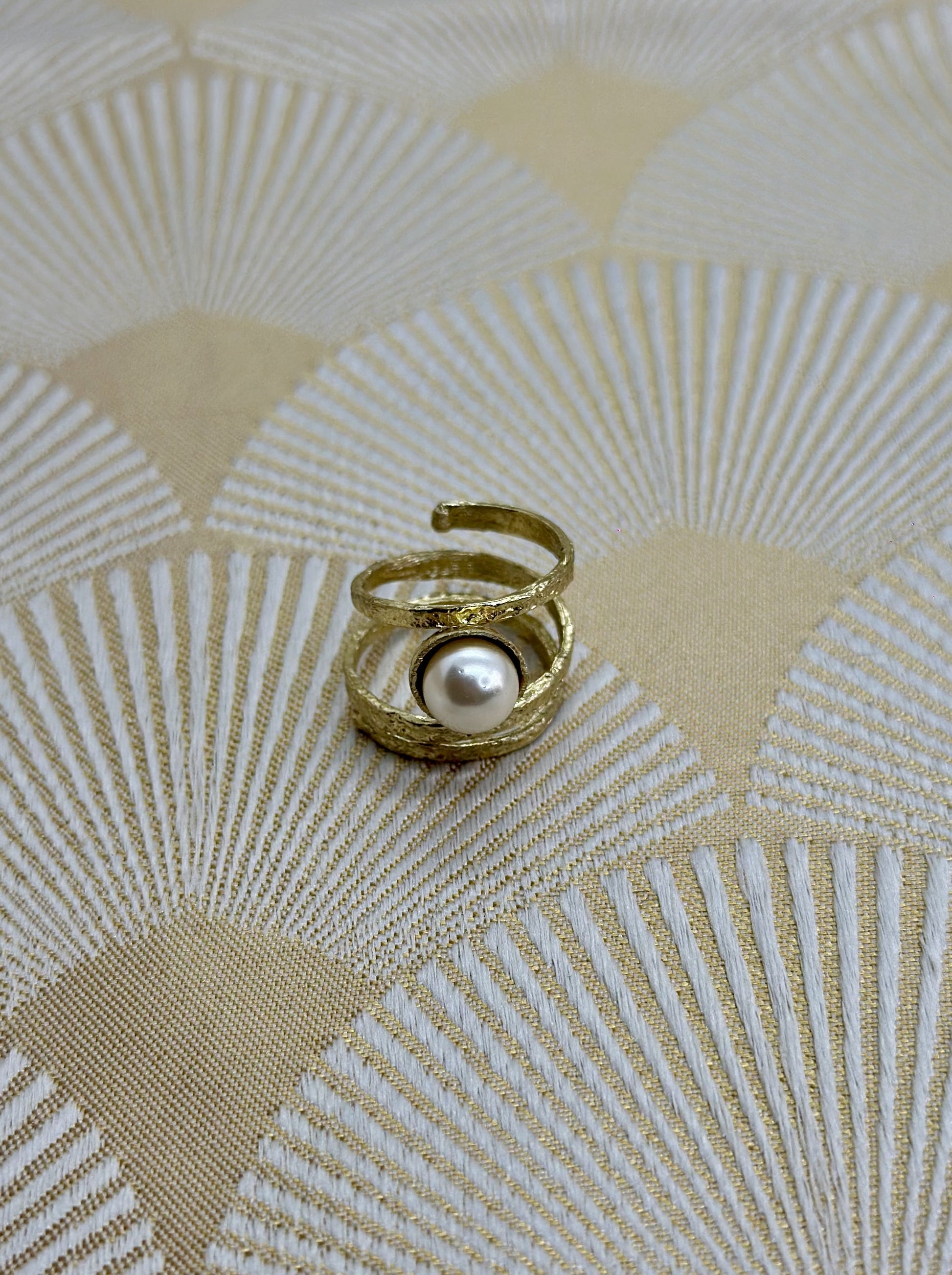 Bague en Bronze doré très résistant, original élégant et minimaliste, avec une perle naturelle.