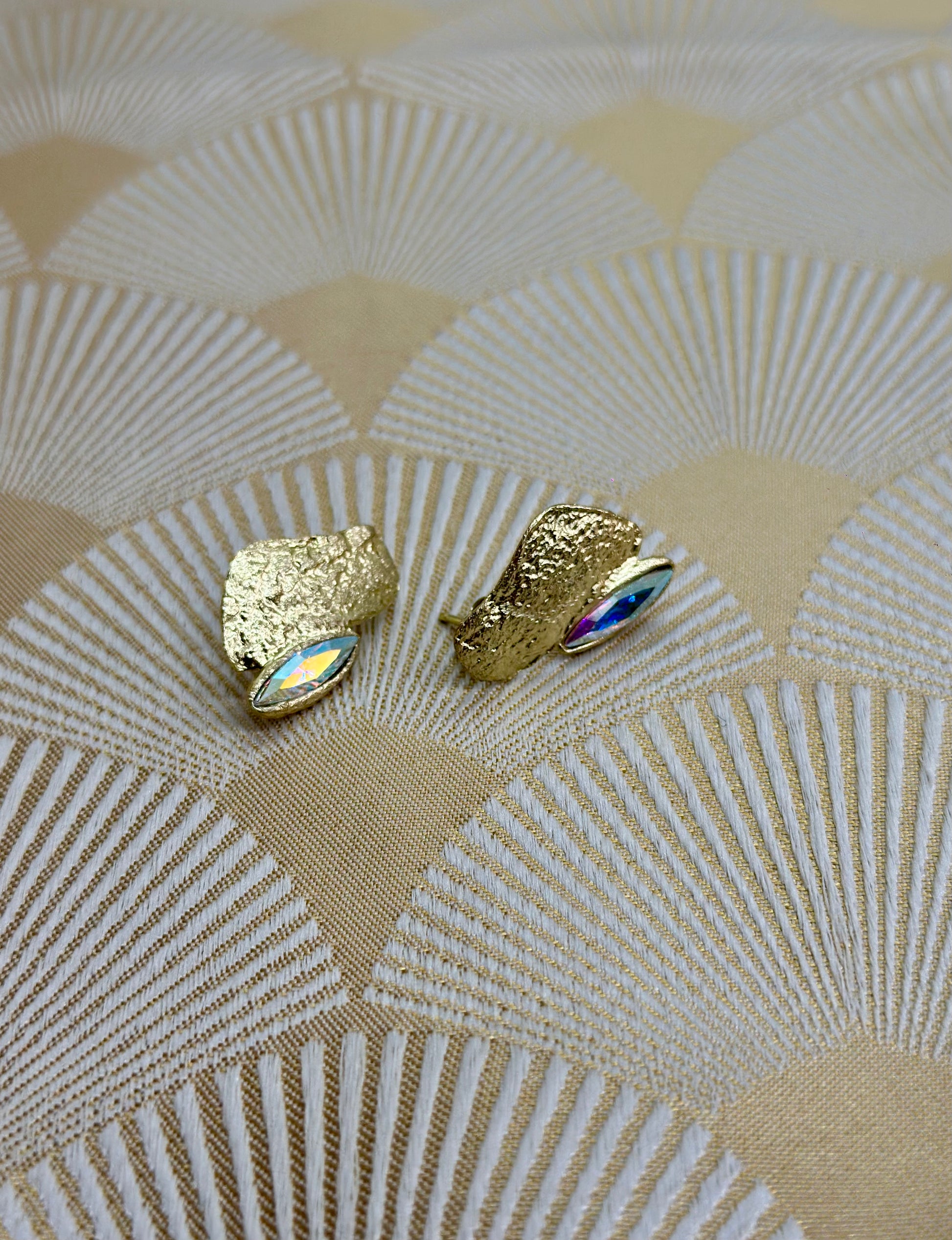 Boucles d'oreilles en Bronze doré très résistant, original élégant et minimaliste, avec un cristal de verre naturel.