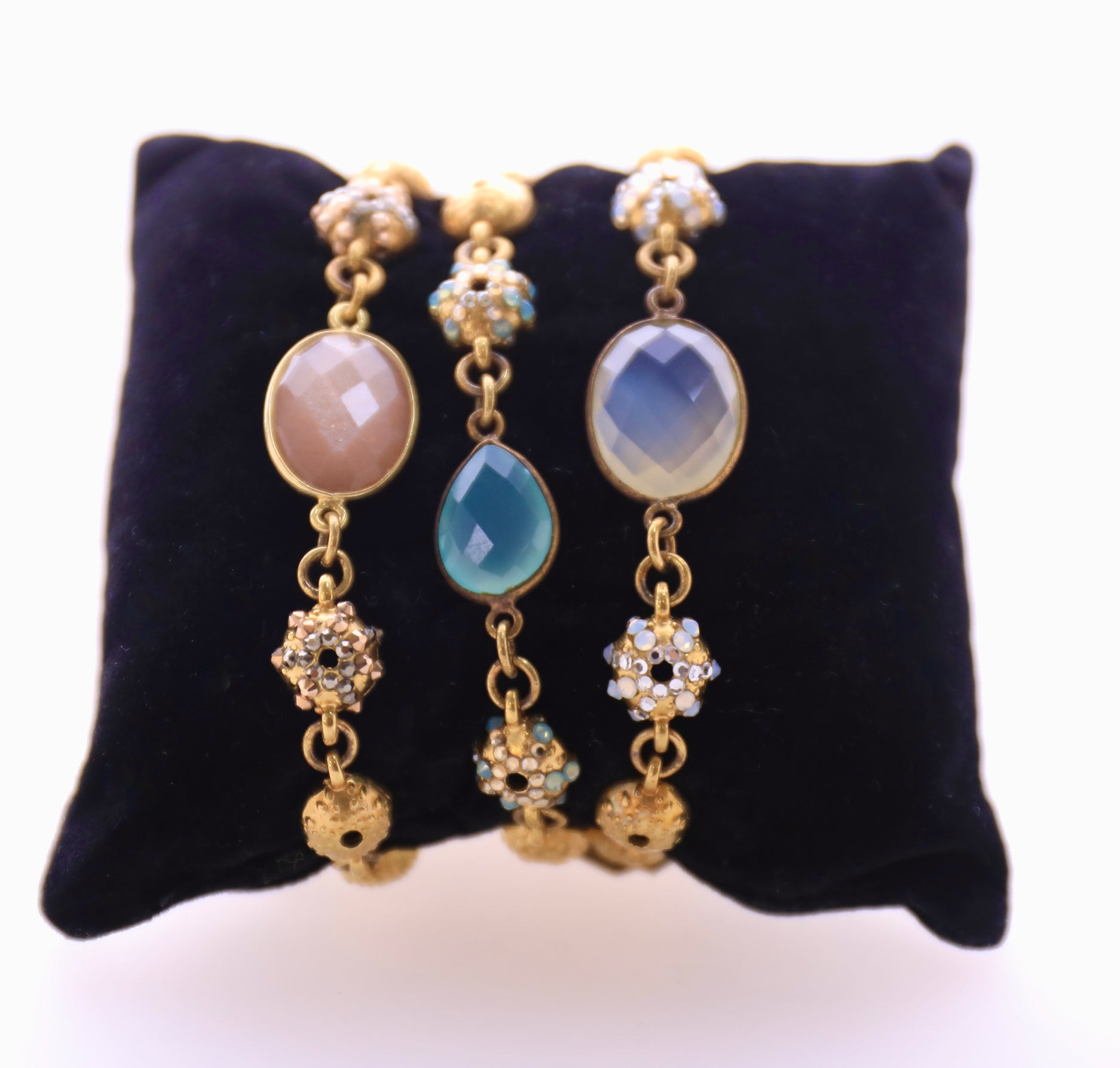 Gold-plated bracelet and semi-precious stone / Charms set with mini Swarovski crystals