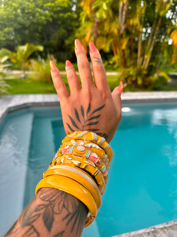 Les bracelets Amok, pièces signatures de la marque sont entièrement dessinés par Margot Falcy, fondatrice d'Argelouse. Ils sont soigneusement gravés avec notre logo "Argelouse" qui atteste de leur authenticité.