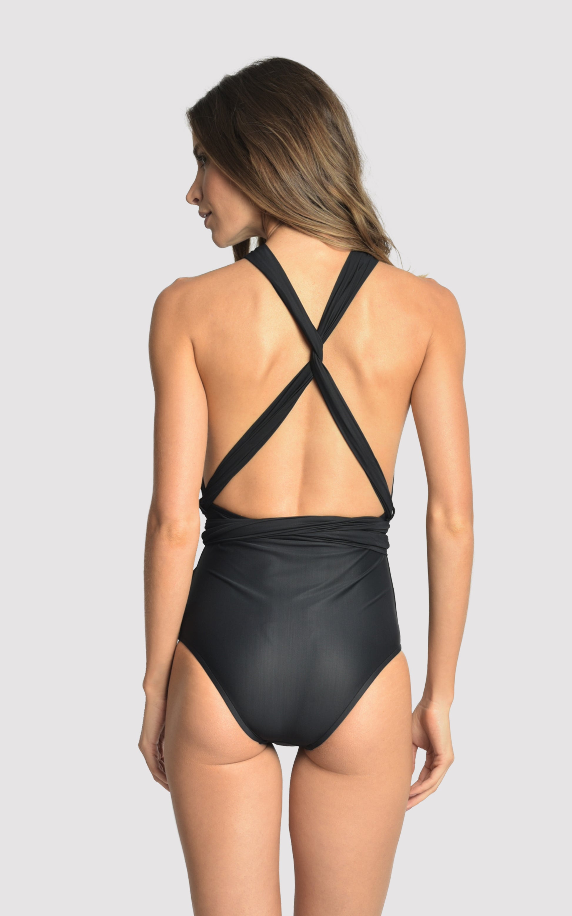 Long straps offer alternative styling options: asymmetrical or crossover front