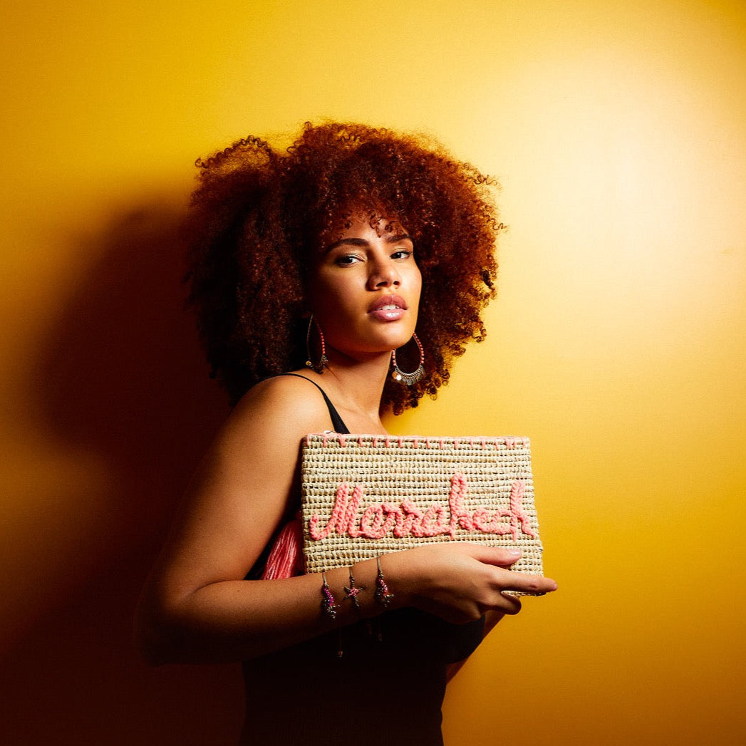 Clutch made from natural straw by Berber women in Morocco.
