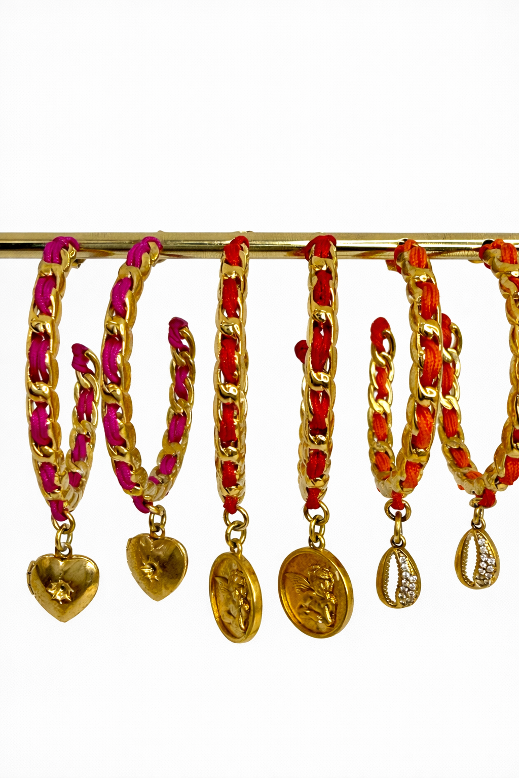 Les boucles d’oreilles Monsens incarnent l’esprit couture dans une interprétation à la fois graphique et raffinée. Inspirées de l’univers de la Collection Couture, elles associent une maille textile subtilement colorée à l’éclat du plaqué or, créant un contraste délicat et contemporain.